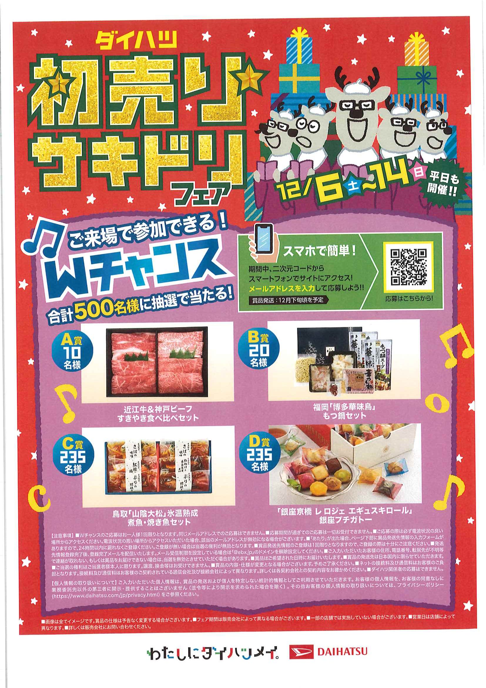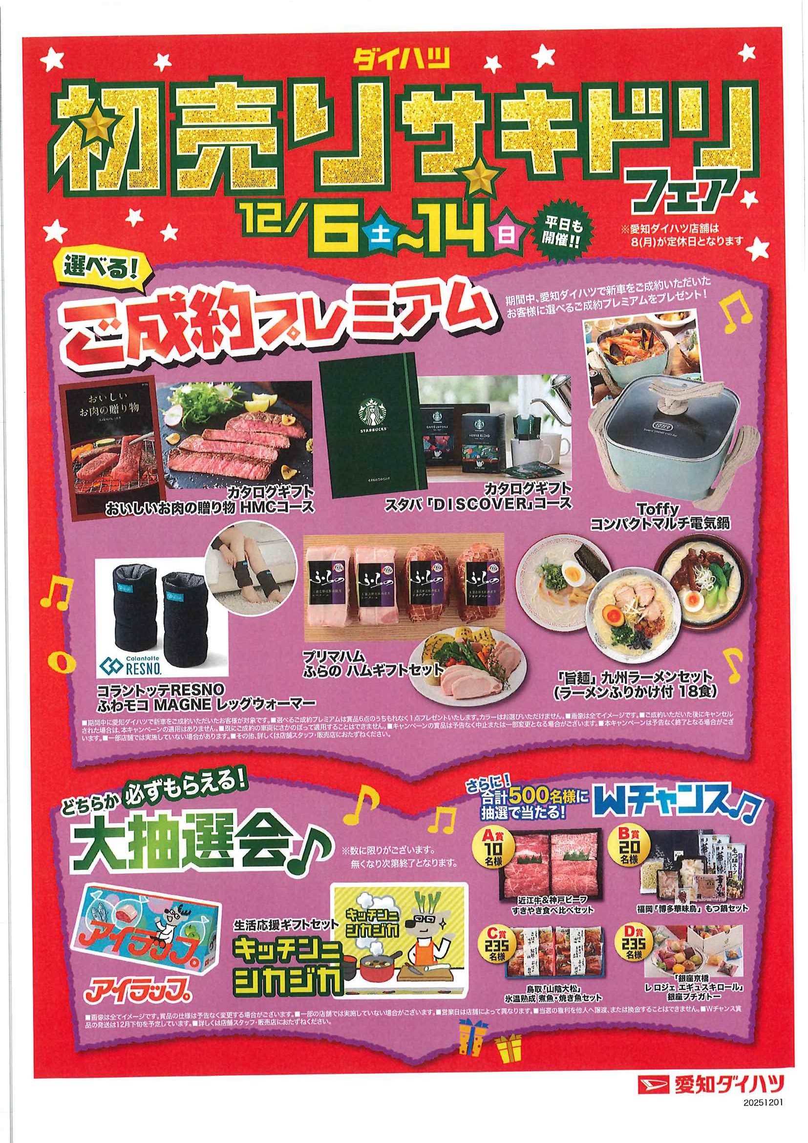 - 2025年12月3日 イベント・キャンペーン情報 【 12/6(土)~14(日) 】❅₊° 初売りサキドリフェア °₊❅