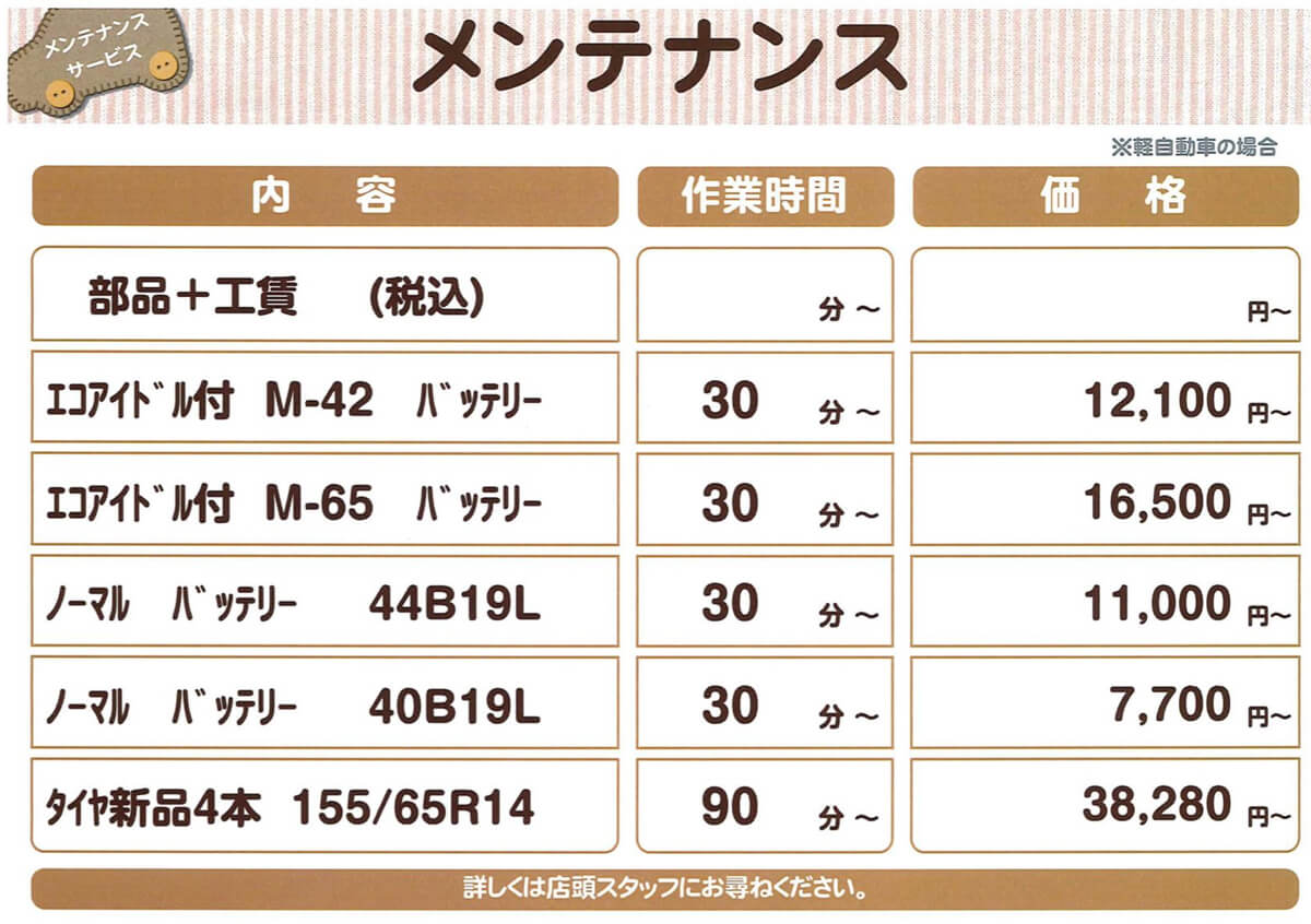 一般整備料金表