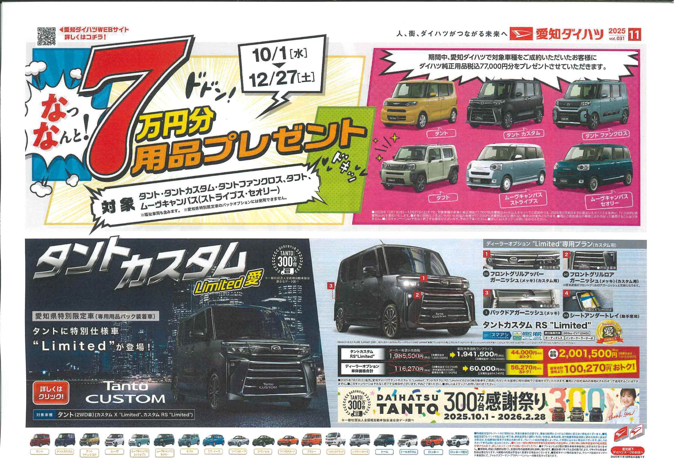 期間中に対象車種をご成約いただくと、 ✨ダイハツ純正用品 7万円分✨ をプレゼント🎁