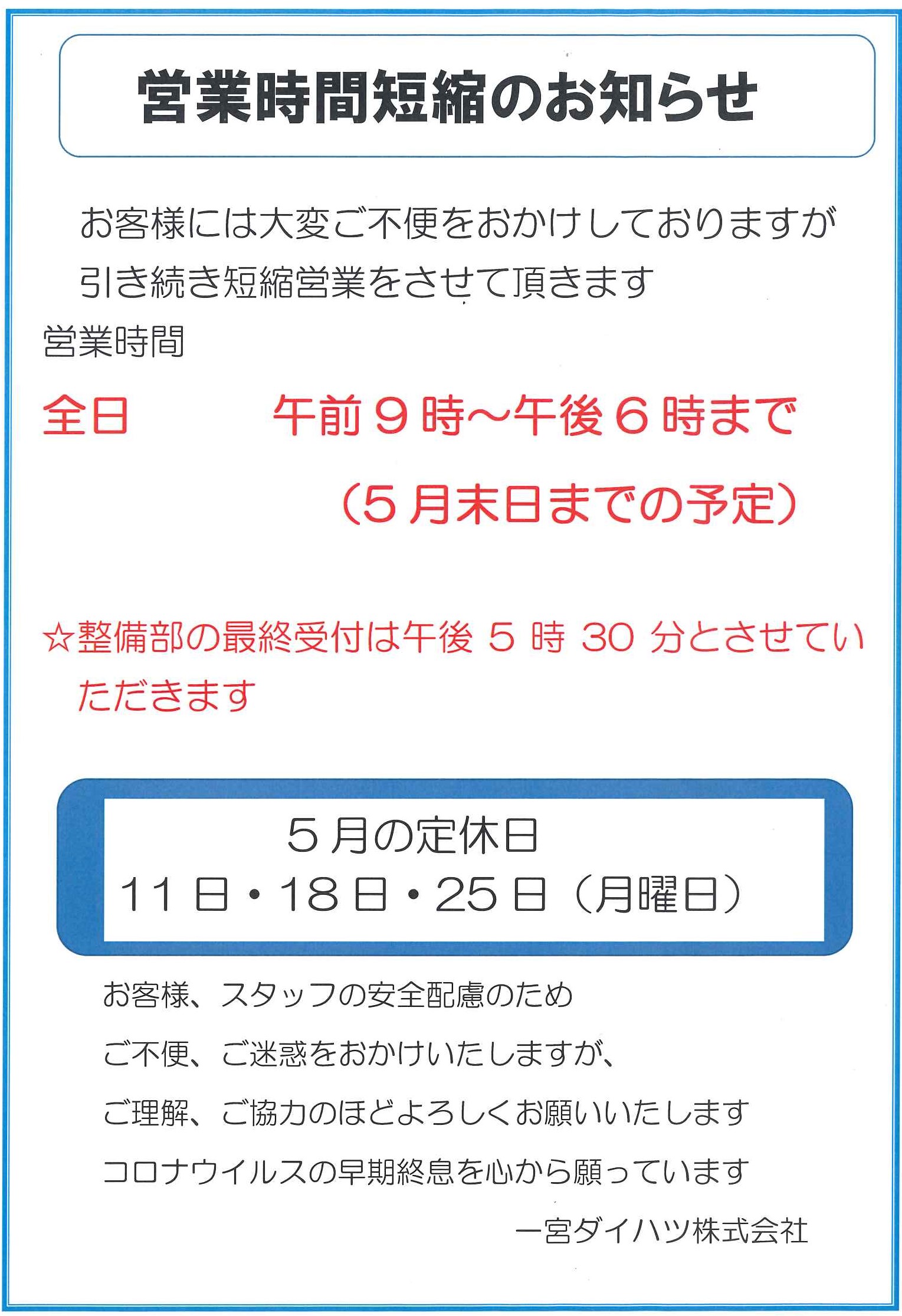 平日:9時~19時(整備:~18時) 日曜日:9時~18時